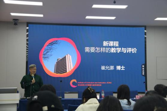 院长朱桂琴教授主持,华东师范大学课程与教学研究所所长、国家基础教育课程教材专家工作委员会委员崔允漷教授主讲。崔教授首先阐述了核心素养的两个突破点:核心素养和学业质量。他强调新教学要坚持素养导向、强化学科实践、推进综合学习、落实因材施教,并指出新评价要聚焦真实情境问题解决。本次论坛让同学们更加深入的了解了如何落实核心素养和提升学业质量,如何实施新教学、新评价。路虽远行则将至,事虽难做则必成。新课程一定会在教育工作者们日复一日年复一年的努力下,以日积月累的浅功造就新辉煌,让教育的新课程改革更上一层楼。