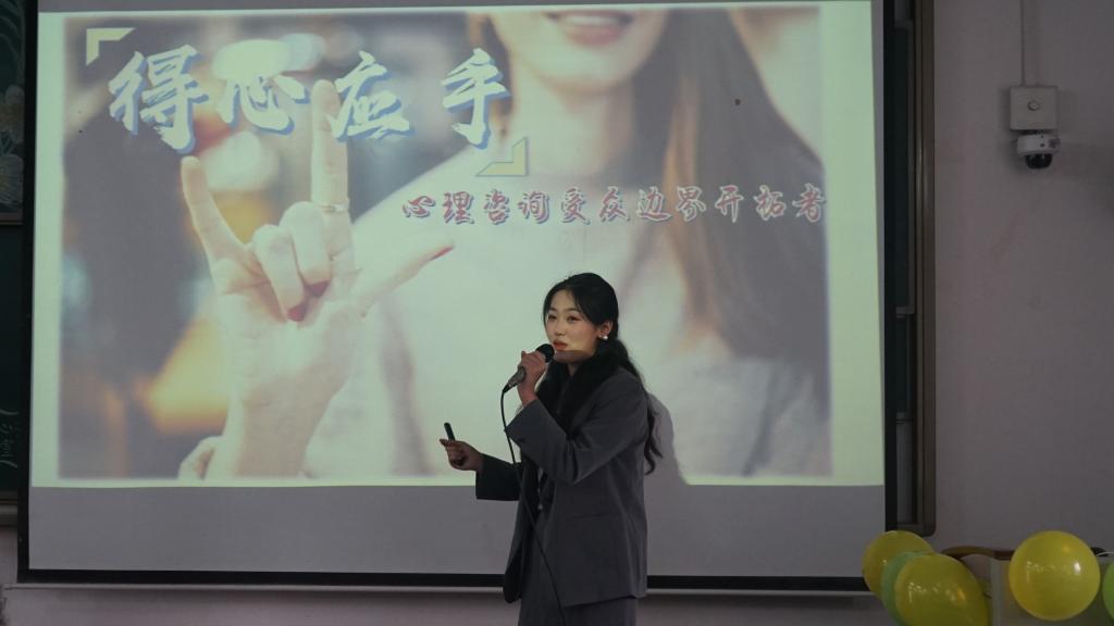 心理辅导课教学创新展示会赛道中,同学们摇身一变,成为了心理健康教育讲台上从容大方的老师。他们有的侃侃而
