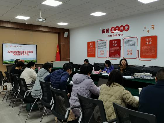 在砺志楼T2421会议室召开校级课堂教学质量督导组学院反馈工作会。校级教学督导陈君教授、学校教务处贺青梅老师、学院教学督导专家、各系系主任、教科办全体工作人员参加了会议,会议由51吃瓜网