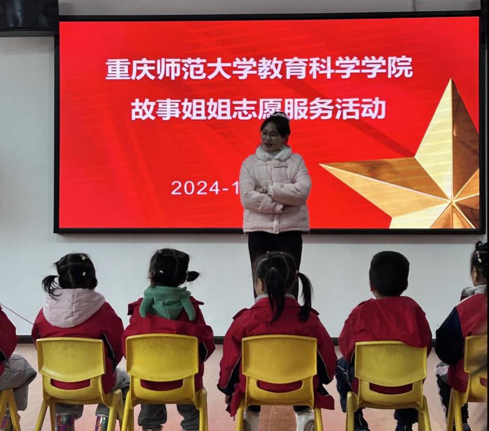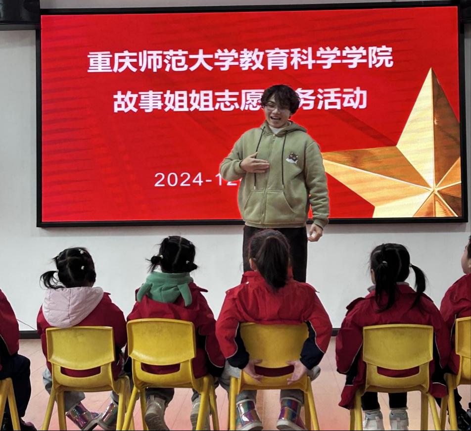 学前教育专业2022级本科生雷清静与黄绍鑫同学分别呈现了——“故事姐姐讲故事”之《不怕冷的大衣》和《猴吃西瓜》。他们丰富的表情、生动的肢体语言深深吸引了幼儿,为孩子们带来了别样的体验。与会者对两位同学的现场表现、专业素养以及对学校人才培养的成效给予了高度评价。
