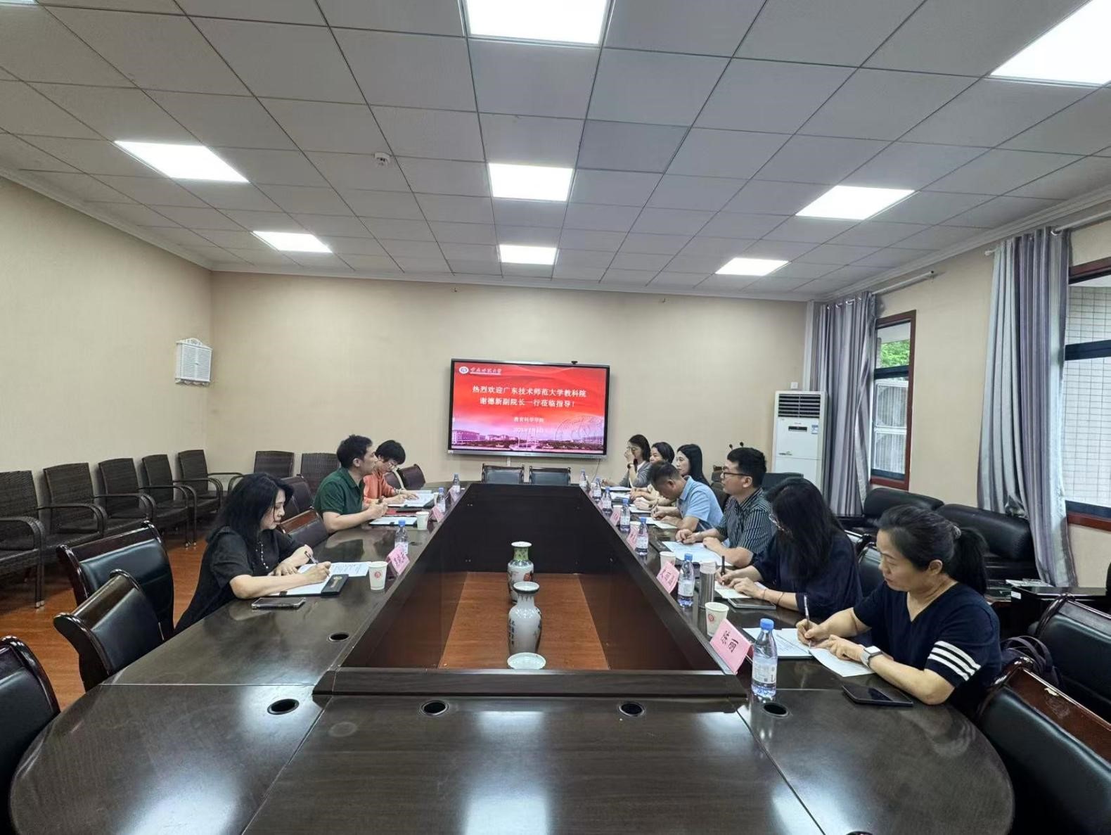 开展交流访问。座谈会在砺志楼2434召开,学院副院长彭文波、学前教育系主任蔡红梅、吴晓云副教授、田波琼副教授参加交流座谈。