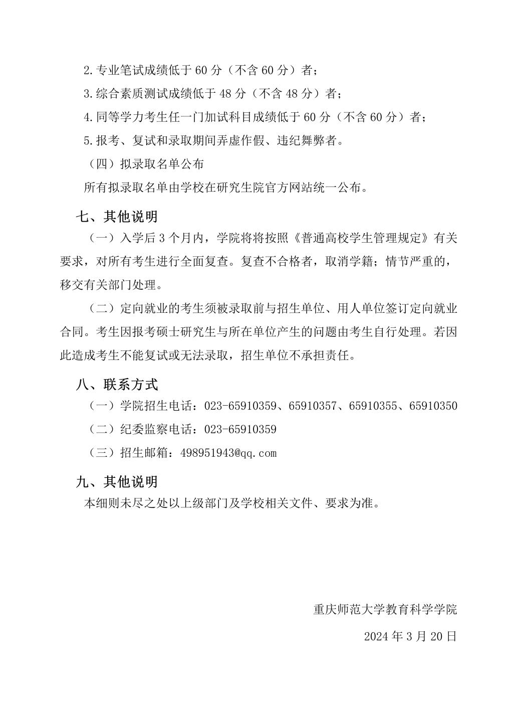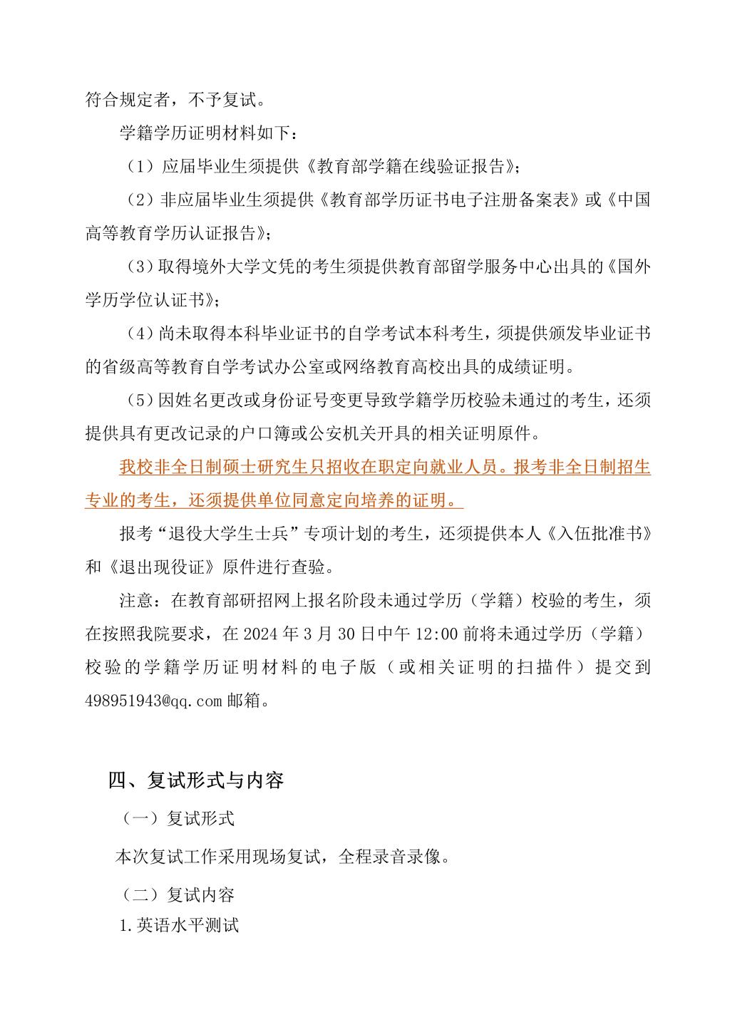 2024年硕士研究生招生复试录取实施细则