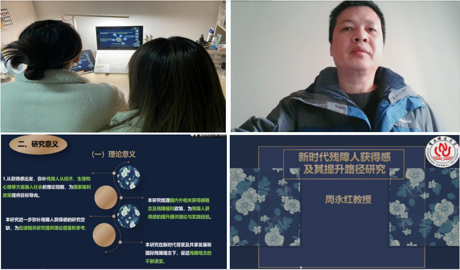 全体研究生参加。本期名师讲堂邀请到周永红教授作了题为“新时代残障人获得感及其提升路径研究”的学术讲座。周永红教授主要研究方向为社会心理学,侧重于弱势特殊群体,其研究成果发表在许多知名期刊上。