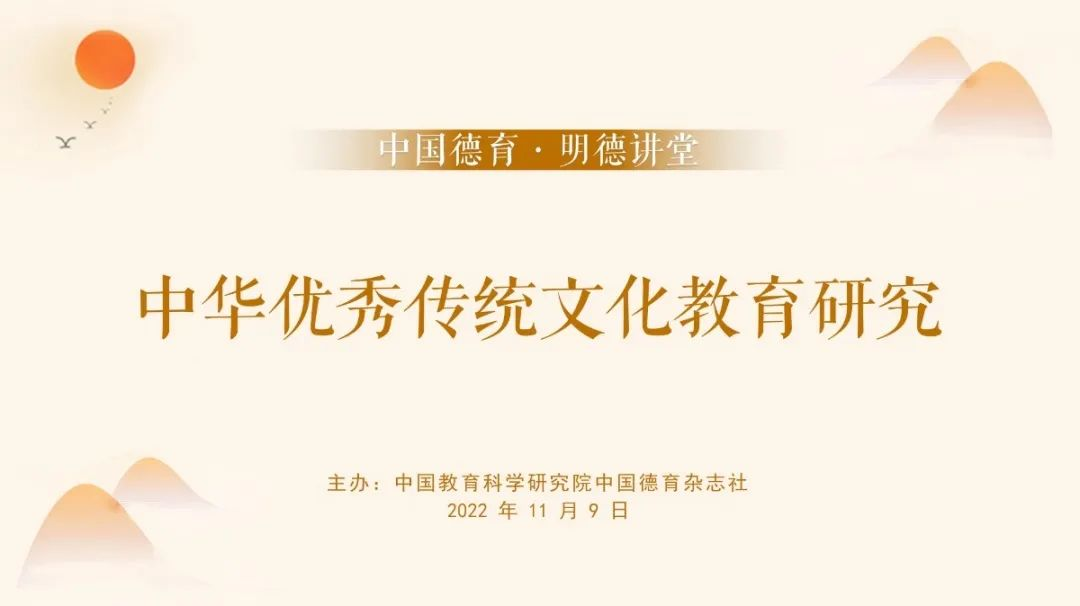 作为新时代的教育工作者,应更加全面深刻地理解和把握中华优秀传统文化传承中的关键问题,不断总结反思中华优秀传统文化教育的做法与经验,为引导学生增强文化自信、讲好中国故事作出贡献。基于此,中国教育科学研究院《中国德育》杂志社“中国德育·明德讲堂”第18期的主题设置为“中华优秀传统文化教育研究”。