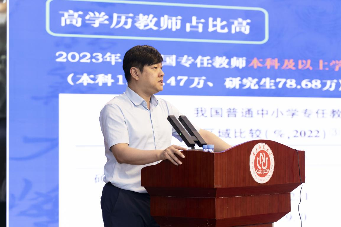 2025年6月29日,北京师范大学教育学部副部长宋萑教授在我校博雅楼504会议厅以《落实教育强国规划纲要:铸就新时代大国良师》为题作主旨报告。宋萑教授以2023 年全国教育大会及《教育强国建设纲要》和2023年9月发布的 “教育家精神” 为背景,剖析了教育强国背景下的教师队伍建设。