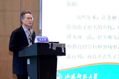 山东师范大学教育学部部长徐继存汇报题为《关于地方高师院校教育学科发展的思考》。他提出,地方高水平师范院校在“双一流”建设中应避免盲目追求综合化与学科布局的“大而全”,防止弱化其立校之本的教师教育特色。地方院校需立足区域基础教育发展需求,集中资源强化教师教育特色。
