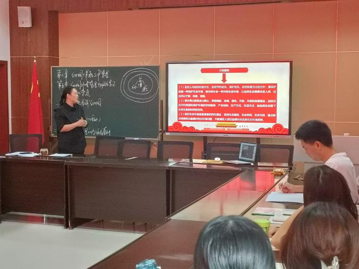 会议第三项议程,学习习近平新时代中国特色社会主义思想---习近平生态文明思想。教师党员张志敏同志表示,人与自然是命运共同体,排放核废水会对我们的环境产生深远持久的影响,必须坚决抵制。接着,支部书记肖颖同志带领党员们一起深入学习了习近平新时代中国特色社会主义思想---习近平生态文明思想的“六项原则”“五个重大关系”等相关内容。习近平生态文明思想是开放的、发展着的新思想,我们需要全面把握、深刻领会,并在实践中发扬光大。