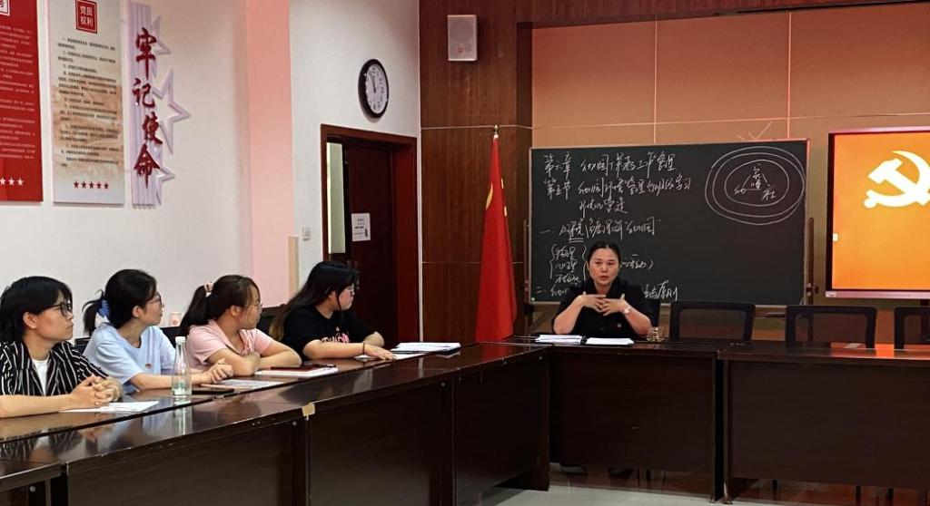 图为支部书记肖颖同志带领大家学习