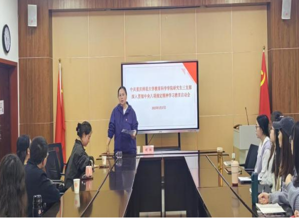 党委研究生三支部举行深入贯彻中央八项规定精神学习教育启动会,开展了三月主题党日活动。活动由支部书记肖颖主持,全体在校党员参加活动。